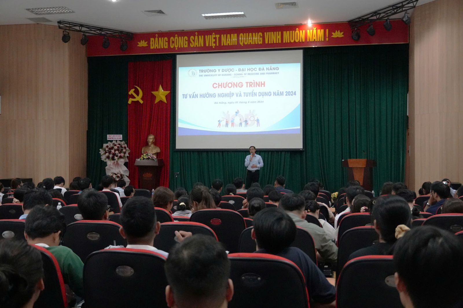 Chiều ngày 01/08/2024,Trường Y Dược – Đại học Đà Nẵng (ĐHĐN) đã kết nối với các đơn vị bệnh viện và doanh nghiệp tổ chức chương trình Tư vấn hướng nghiệp và tuyển dụng năm 2024 cho các tân Bác sĩ, Dược sĩ, cử nhân Điều dưỡng tốt nghiệp và sinh viên năm cuối với hy vọng chia sẻ những kinh nghiệm, hỗ trợ sinh viên trong việc tìm kiếm cơ hội việc làm.